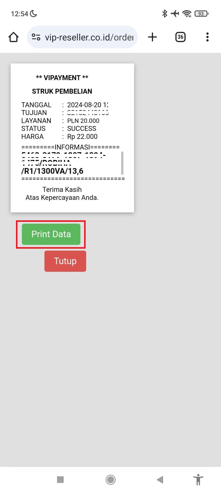 Selanjutnya tahap print struk. Pergi ke Riwayat Pesanan vip-reseller.co.id Lalu klik Detail dan Klik Tombol Print.
